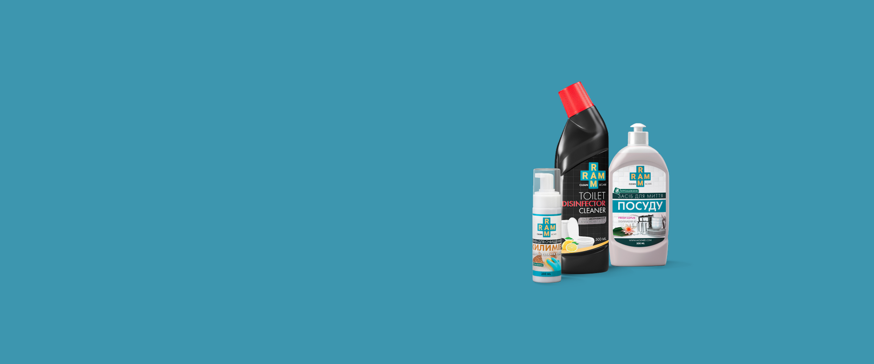 "RAM" ПРОПОНУЄ ТІЛЬКИ НАЙБІЛЬШ ВИСОКОЯКІСНІ ПРОДУКТИ МИ ГАРАНТУЄМО, ЩО НАШІ ЗАСОБИ ДЛЯ ЧИЩЕННЯ НЕ ТІЛЬКИ ВИДАЛЯЮТЬ ЗАБРУДНЕННЯ, А Й ЗАЛИШАЮТЬ ВАШ ДІМ БЕЗПЕЧНИМ І СВІЖИМ.